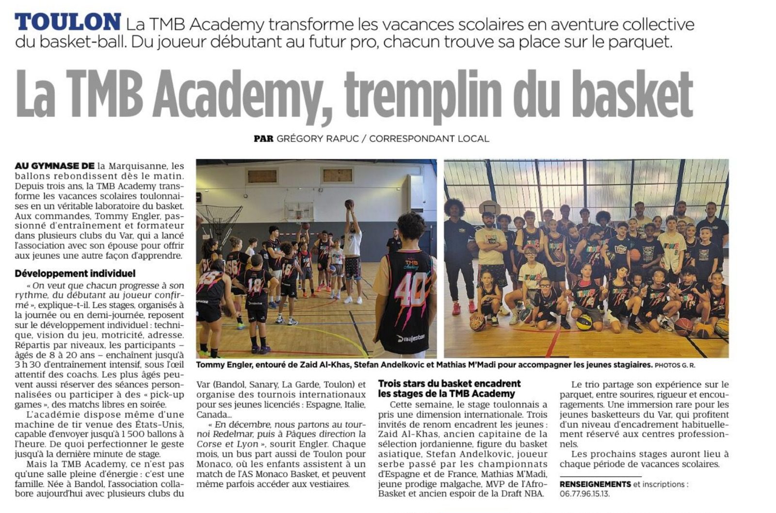 Fondée en 2020, la TMB Academy est une association loi 1901 à but non lucratif, spécialisée dans l'organisation de stages de basketball clés en main pour clubs et collectivités.