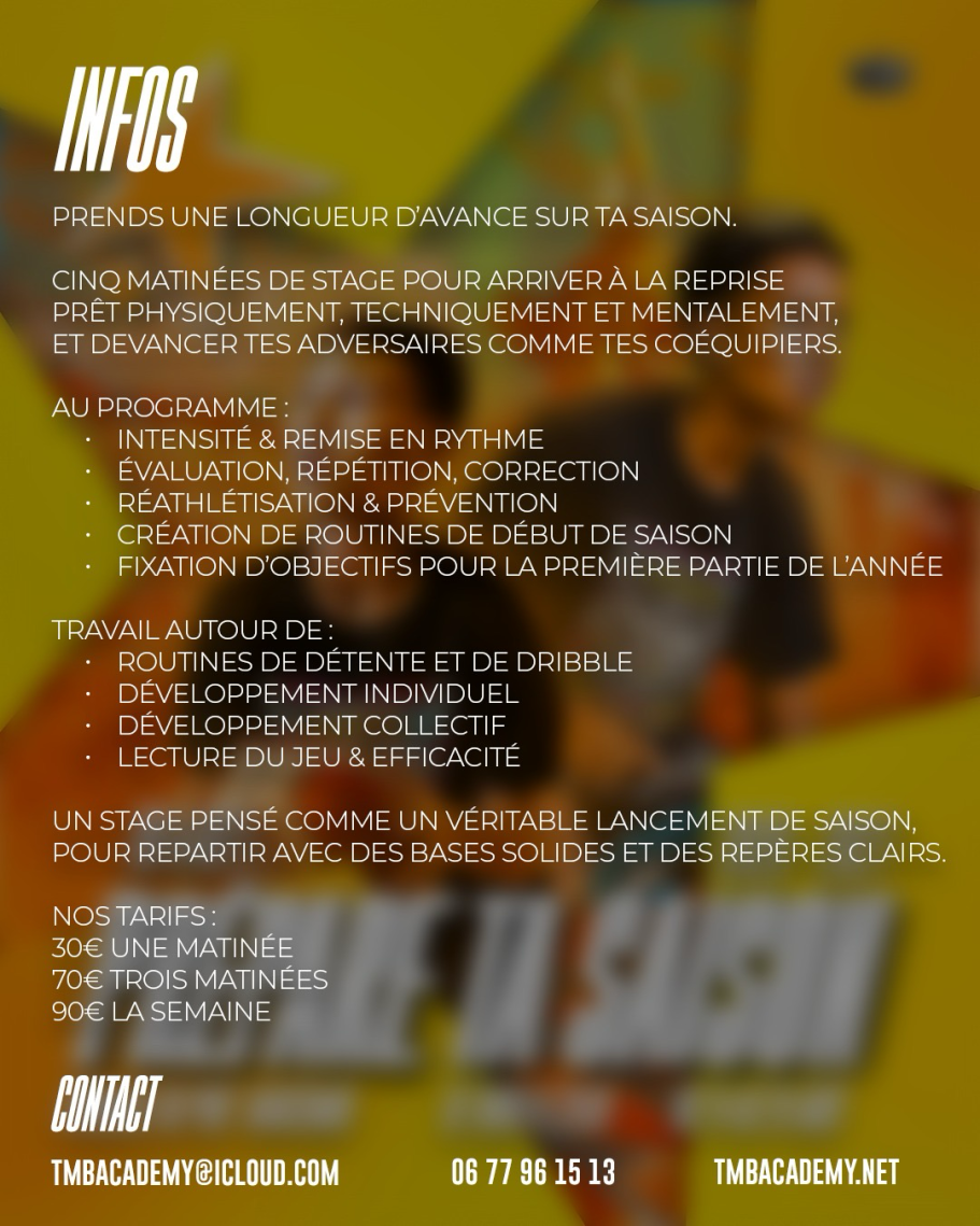 Cette première semaine lance l’été TMB avec une ambition claire : mélanger les structures, les joueurs et les coachs pour créer un environnement de travail unique.