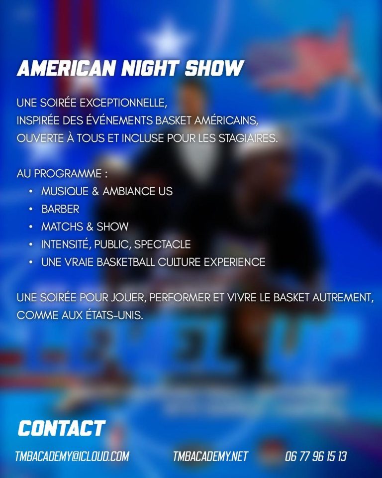 et une American Night Show incluse pour les stagiaires — musique, matchs, spectacle, ambiance US.