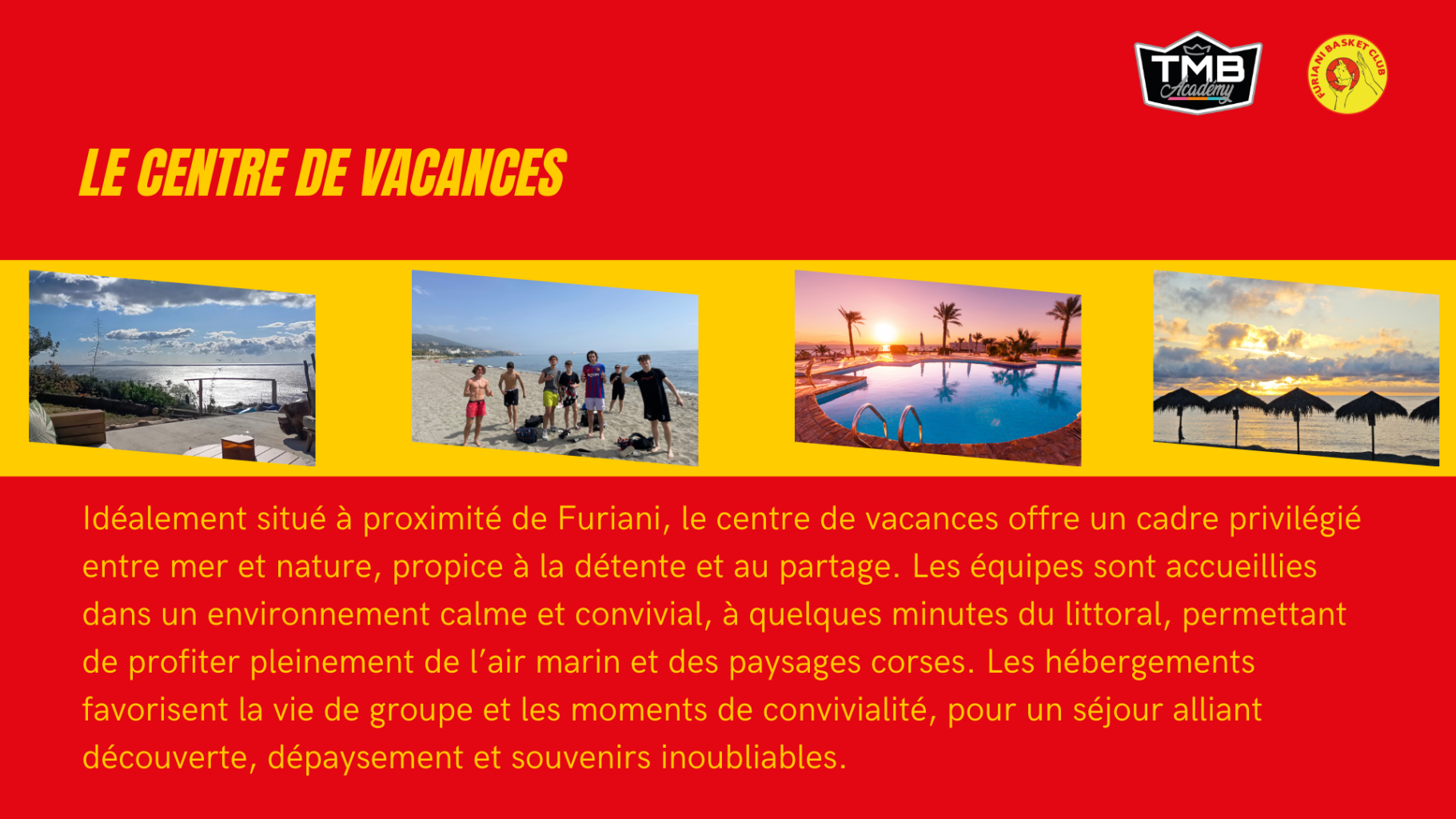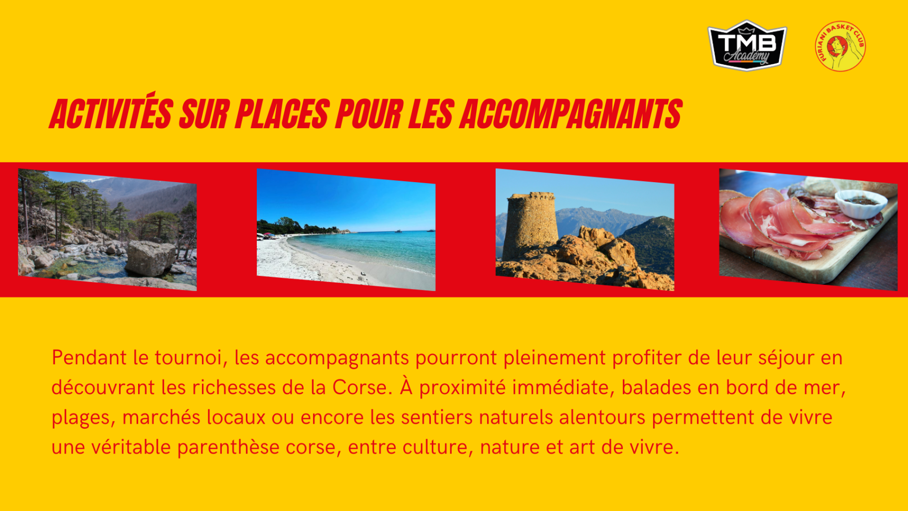 Le tournoi de Furiani est un événement incontournable où la convivialité règne en maître. Au cœur d'une ambiance familiale chaleureuse, ce week-end inoubliable se déroule sous le soleil éclatant, invitant les équipes à partager leur passion pour le basket. Ouvert à tous les niveaux, garçons et filles des catégories U11 à U18 peuvent s'affronter tout en profitant des joies de la mer, d'un hébergement en centre de vacances avec piscine et accès à la plage. Ce séjour est l'occasion idéale de tisser des liens, de s'amuser et de vivre des moments mémorables en famille et entre amis.