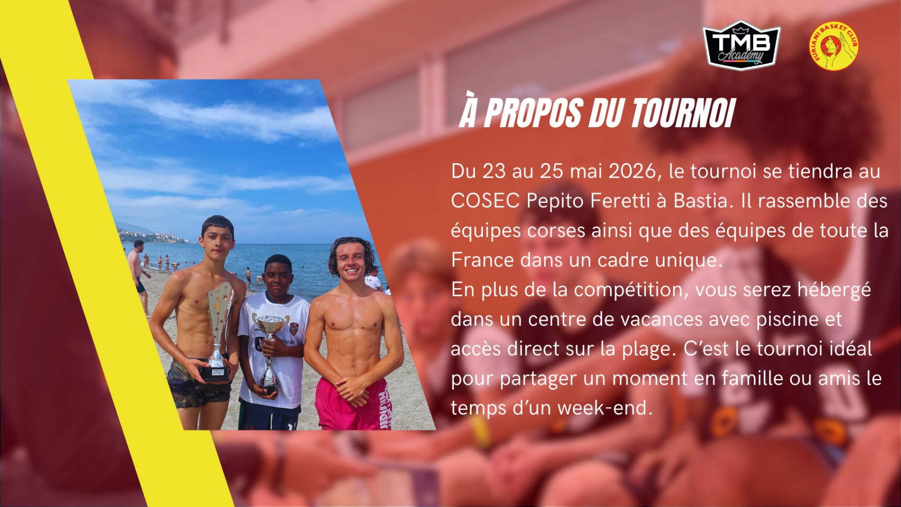 Ce tournoi international regroupe des équipes venues du monde entier. Événement de renom, il est perçu comme l'un des plus importants tournois d'Europe, avec la présence de centre de formation, de sélections nationales et de clubs renommés. Ce tournoi met en avant l'élite du basketball mondial, permettant ainsi aux participants d'affirmer leur potentiel sur une scène internationale et de vivre un séjour inoubliable entre basket, rencontres et bonne ambiance. Hébergement avec piscine, formule all inclusive.