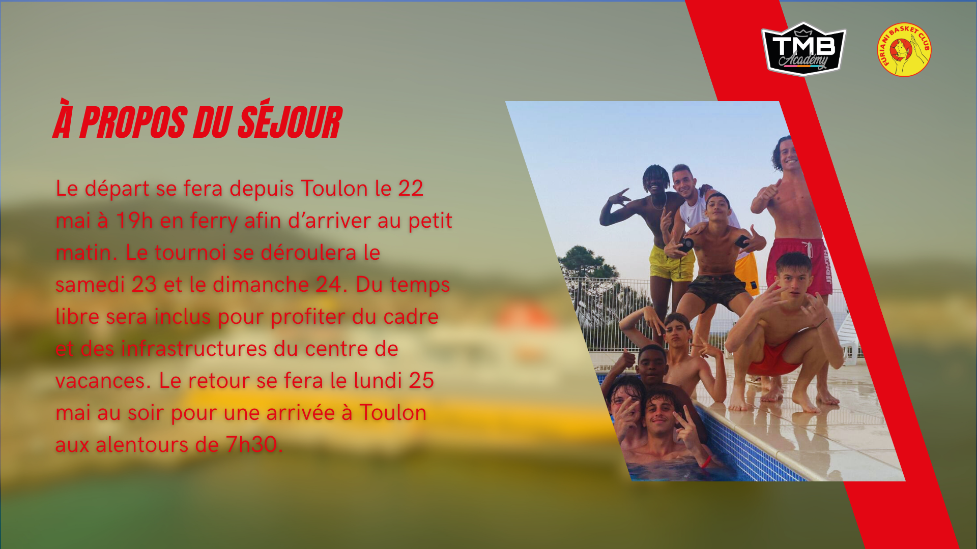 Ce tournoi international regroupe des équipes venues du monde entier. Événement de renom, il est perçu comme l'un des plus importants tournois d'Europe, avec la présence de centre de formation, de sélections nationales et de clubs renommés. Ce tournoi met en avant l'élite du basketball mondial, permettant ainsi aux participants d'affirmer leur potentiel sur une scène internationale et de vivre un séjour inoubliable entre basket, rencontres et bonne ambiance. Hébergement avec piscine, formule all inclusive.