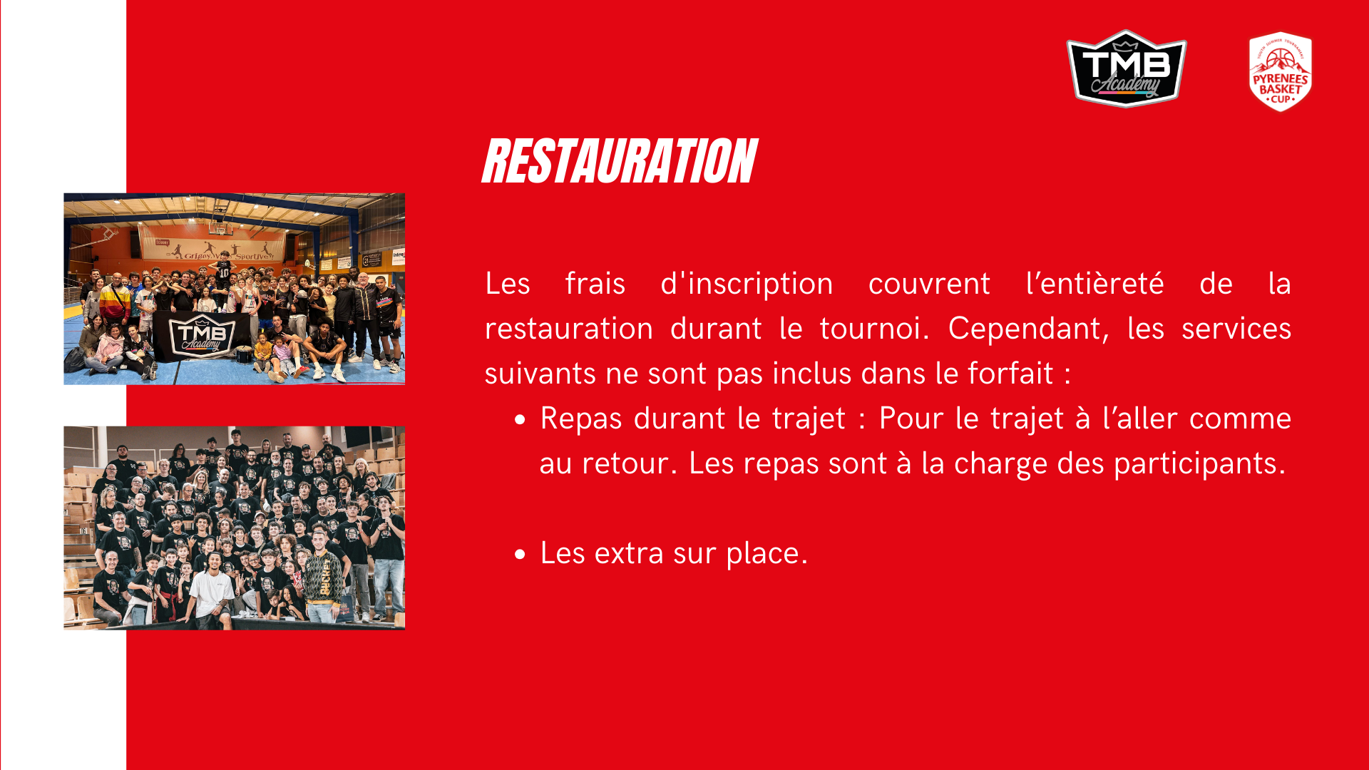 Avec la TMB, nous organisons des tournois de basketball 3x3. Ces événements sont pensés pour offrir une expérience intense, compétitive et accessible à tous les passionnés de basket.