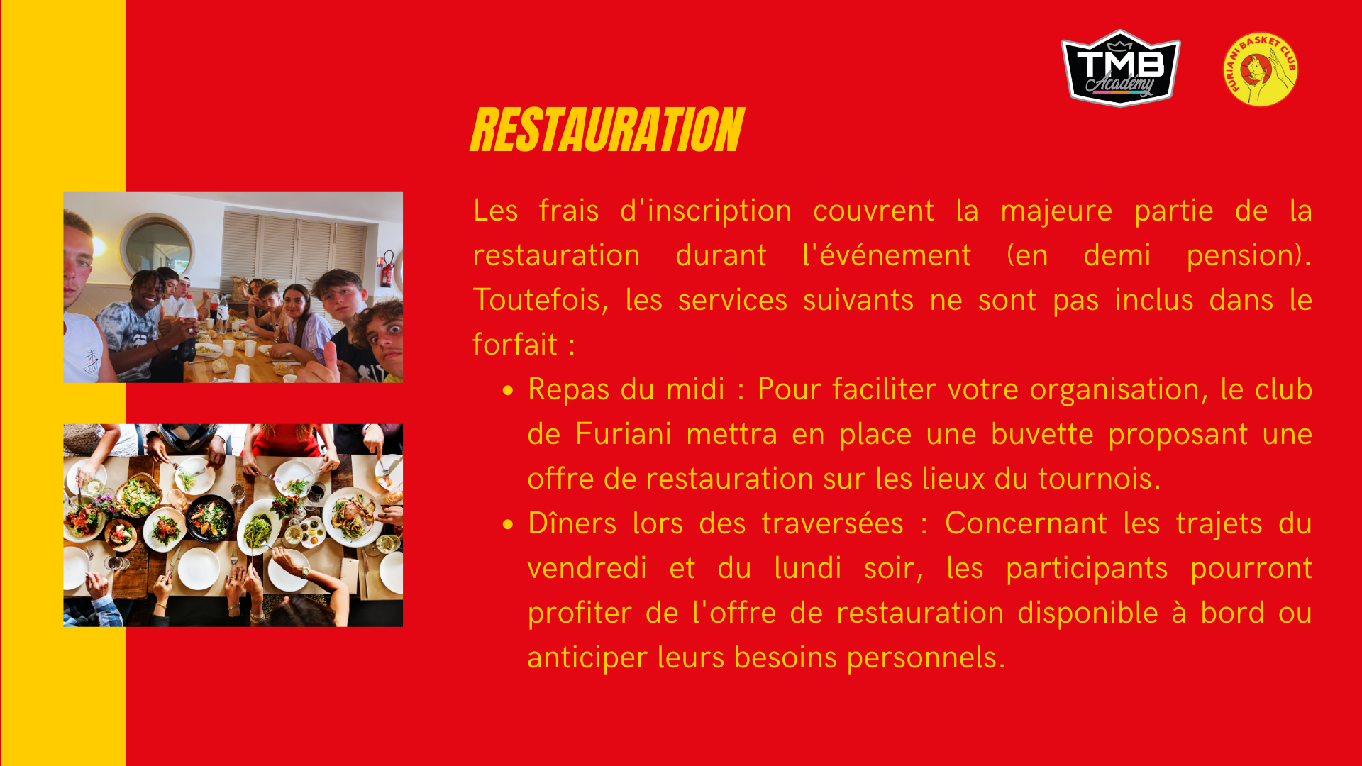 Le tournoi de Furiani est un événement incontournable où la convivialité règne en maître. Au cœur d'une ambiance familiale chaleureuse, ce week-end inoubliable se déroule sous le soleil éclatant, invitant les équipes à partager leur passion pour le basket. Ouvert à tous les niveaux, garçons et filles des catégories U11 à U18 peuvent s'affronter tout en profitant des joies de la mer, d'un hébergement en centre de vacances avec piscine et accès à la plage. Ce séjour est l'occasion idéale de tisser des liens, de s'amuser et de vivre des moments mémorables en famille et entre amis.